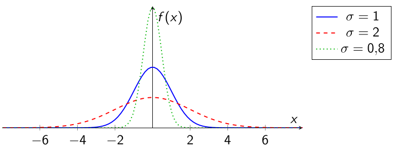 \(\sigma\) small \(\rightarrow\) narrower curve.